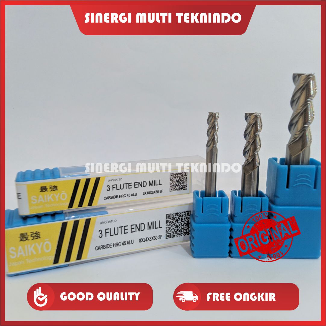 Saikyo HRC 45 Carbide Endmil for Alumunium 3 Flute Uk. 6 x 18 x 6 x 50